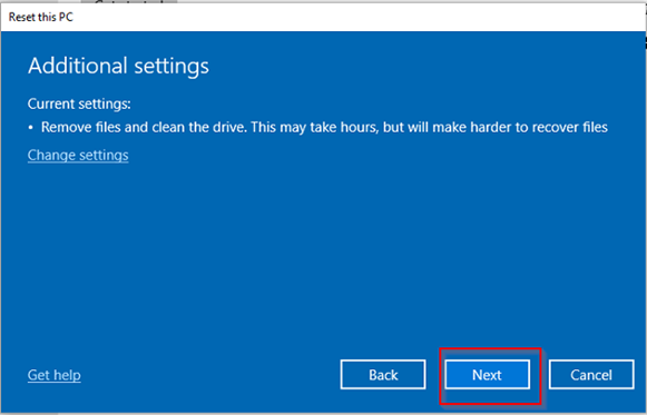 8. Now you will get the Ready to reset this PC screen. Click the Reset button.